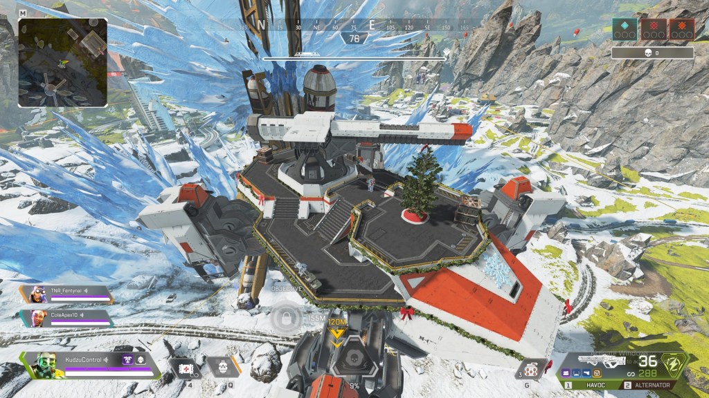 That flow of action feels truly distinct from the pace of fighting in the regular Battle Royale gameplay of Apex. In most early and midgame fights in the BR mode, you can try to retreat while the squads around you fight each other. You’ll also probably have fewer resources than you do in Winter Express, which creates additional pressure and an upper limit on how long you can stay in the fight. But in Winter Express, you start the game with well-equipped guns and a backpack full of ammo, and the aforementioned infinite healing items. If you retreat, you’ll give up your angle on the train – and if you lose the train point without dying, you won’t get respawned with more ammo. Winter Express encourages last-ditch blazes of glory in a way the BR mode never will, and it’s a great highlight of the variety in each Legend’s kit and the way they respond to different situations.