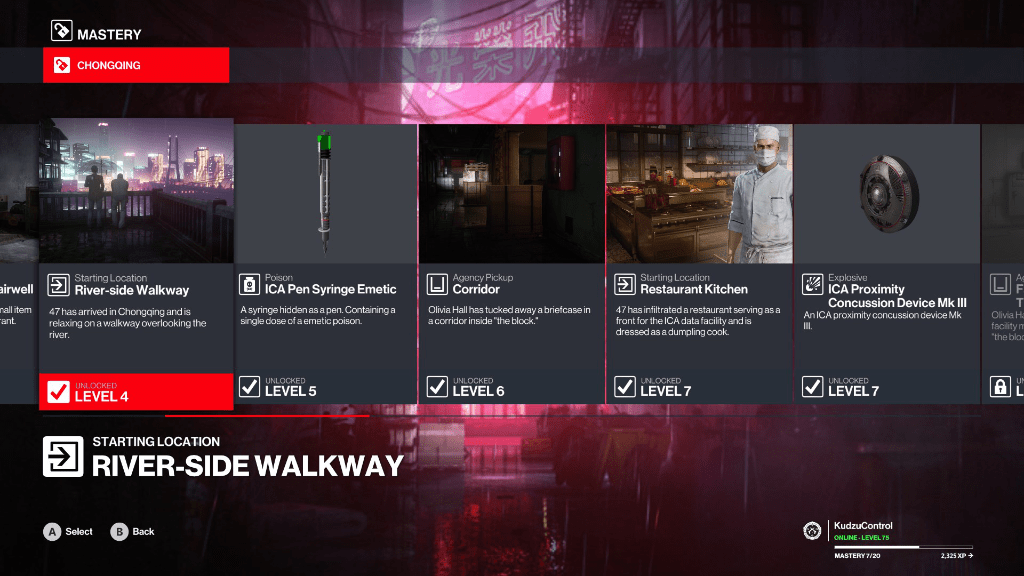 The way that HITMAN’s gameplay and discovery loop evolves is brilliant. As you learn more about the level by exploring, understanding guard patterns and routes through the map, you naturally become faster at moving through certain portions of the environment. If you can jump ahead a few steps in your target’s pattern, you’ll catch new interactions or hints, which improve your understanding and aptitude even further. Combined with the mastery system (which unlocks new starting locations around the level by completing small challenges), the player is constantly learning something new, whether that’s something about the game system or the tools at play in the level. HITMAN wants you to play it well, rewarding your demonstrations of game knowledge and mechanical skill with increased freedom of choice.